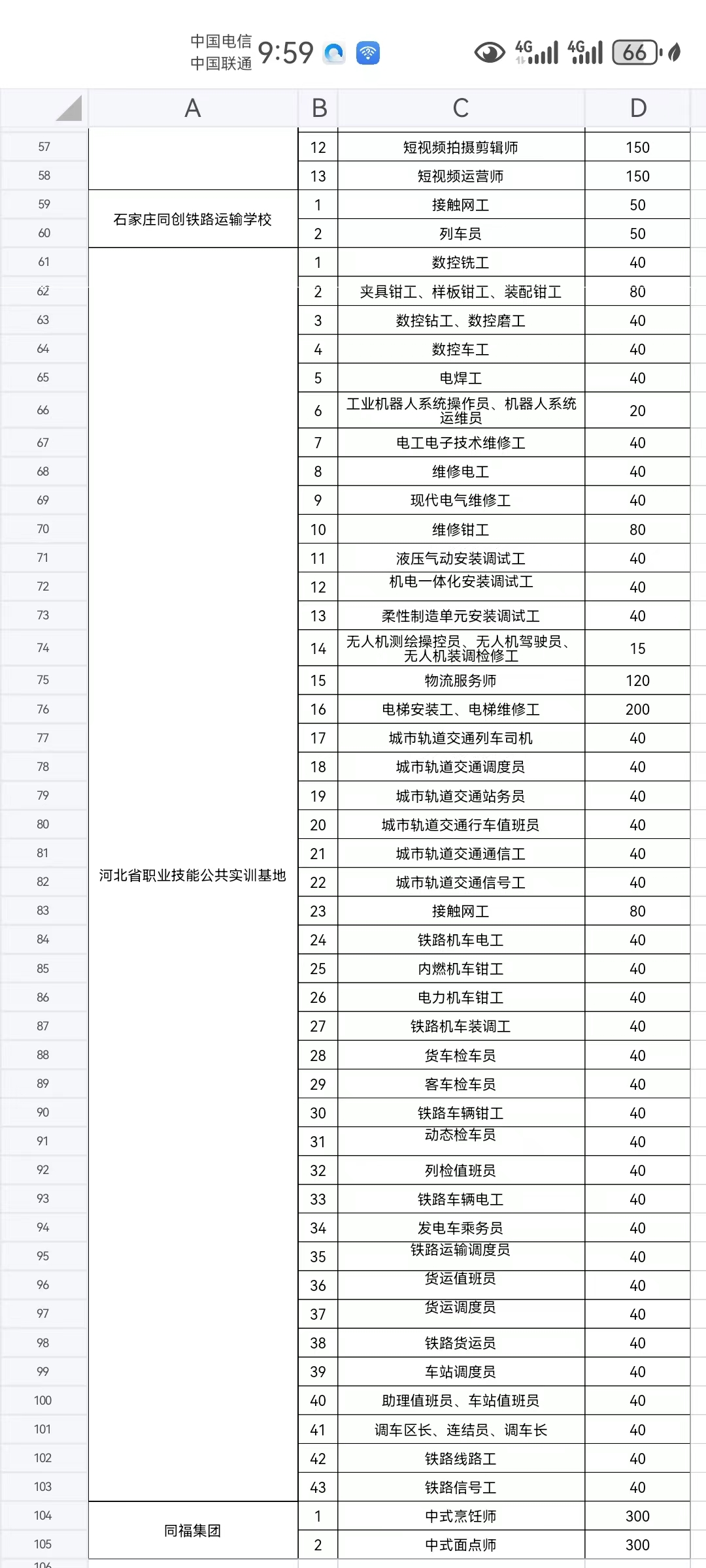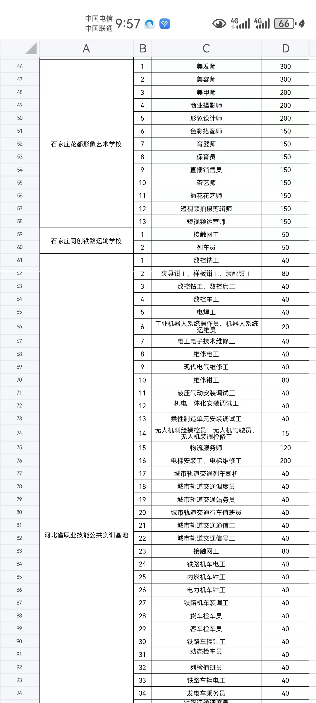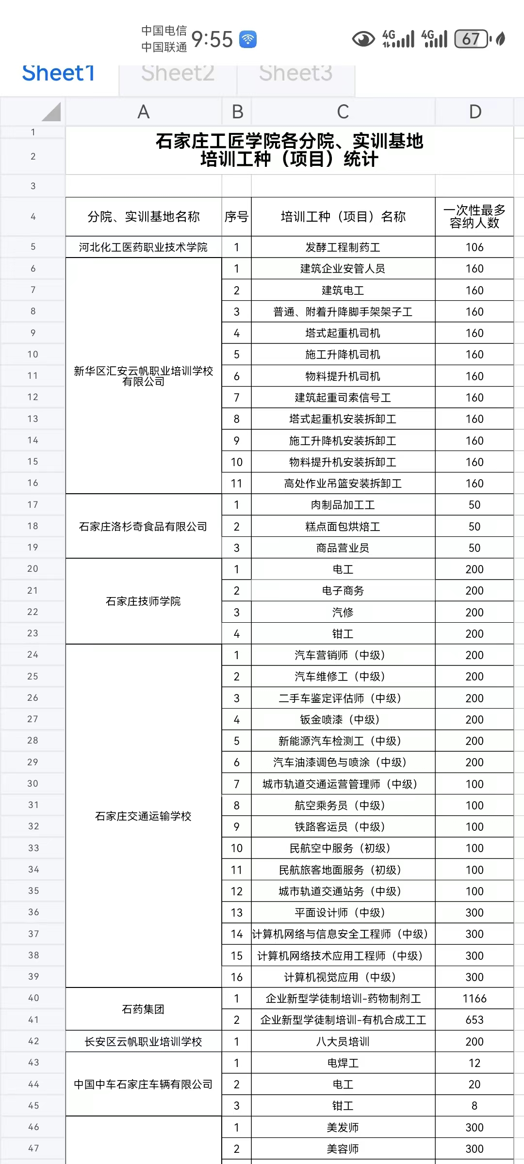 石家莊工匠學(xué)院各分院、實(shí)訓(xùn)基地培訓(xùn)工種(項(xiàng)目)統(tǒng)計(jì)