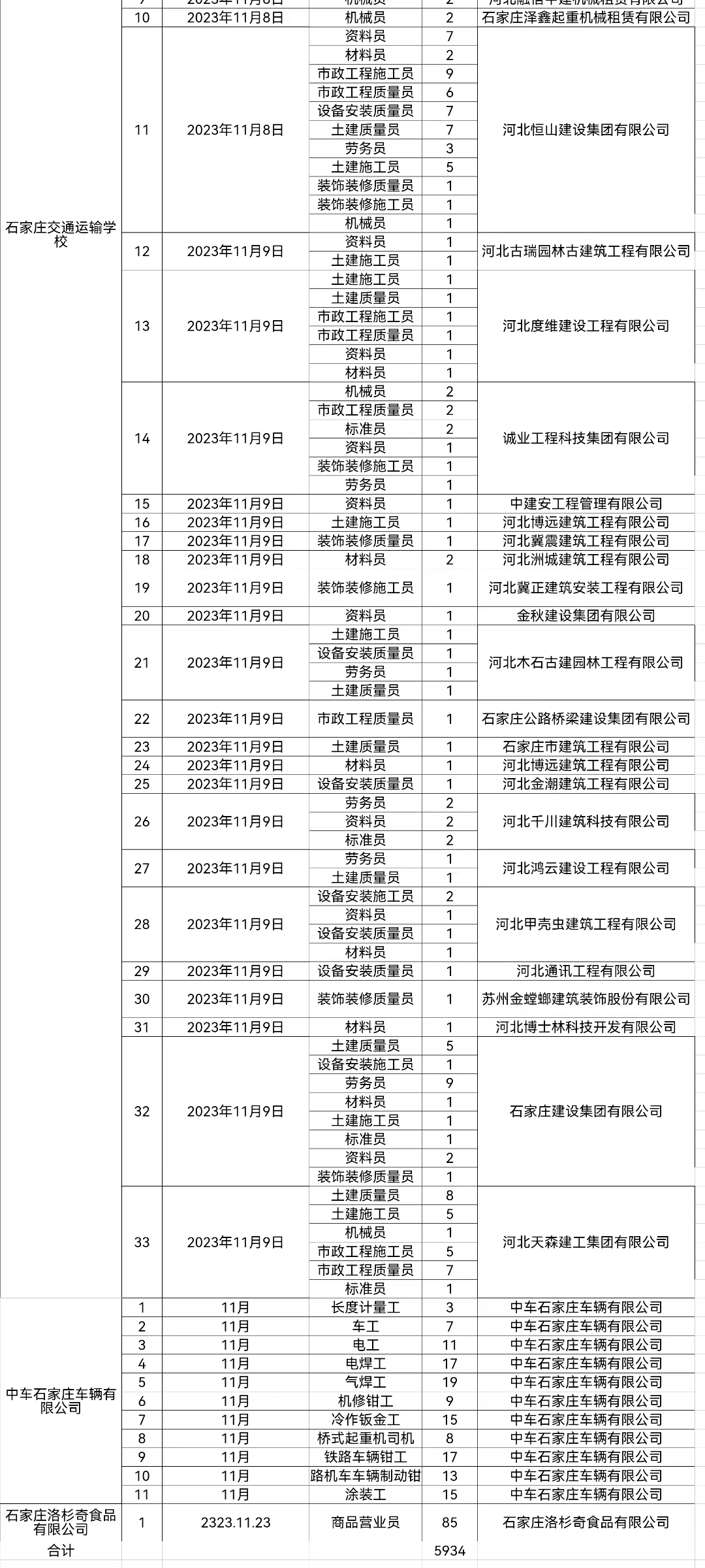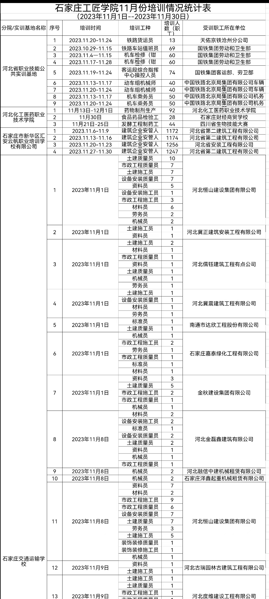 石家莊工匠學(xué)院11月份培訓(xùn)情況統(tǒng)計(jì)表