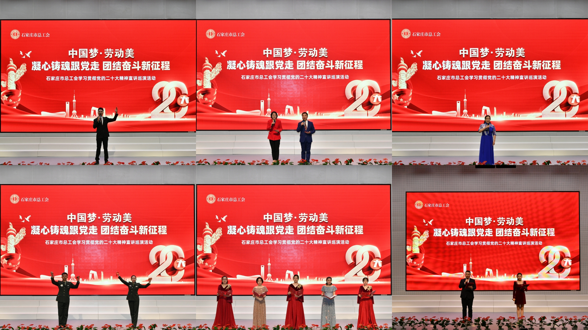 活動(dòng)現(xiàn)場(chǎng),黨的二十大代表、全國(guó)勞動(dòng)模范、石家莊市公交集團(tuán)職工劉艷紅宣講了黨的二十大精神,并分享了參加黨的二十大的感受和體會(huì)。隨后,全市工會(huì)系統(tǒng)職工自編自演的精彩節(jié)目輪番上演,誦讀《黨的二十大之歌》《信仰永恒》、歌曲《向往》、快板《紅色情懷西柏坡》展現(xiàn)了紅色信仰和百年夢(mèng)想,《紅燈記》選段展示了中華優(yōu)秀傳統(tǒng)文化京劇的魅力,現(xiàn)場(chǎng)響起陣陣掌聲。這些弘揚(yáng)主旋律、形式多樣、內(nèi)容豐富的節(jié)目加深了廣大青年學(xué)生對(duì)黨的二十大精神的理解,點(diǎn)燃了他們拼搏奮斗的熱情,