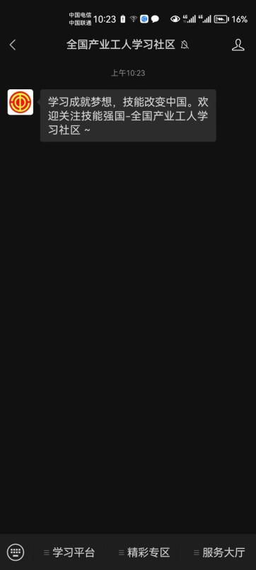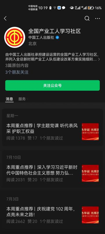 2、點(diǎn)擊“全國產(chǎn)業(yè)工人學(xué)習(xí)社區(qū)”,點(diǎn)擊“關(guān)注公眾號”